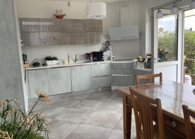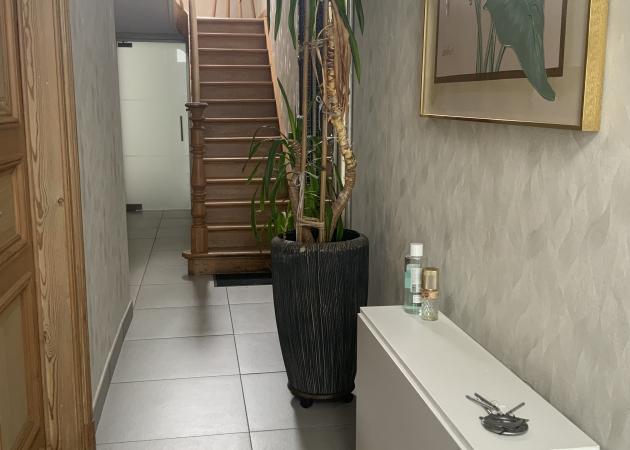 - Espaces partagés : Hall, living, cuisine, salle de bain, wc séparé, garage (vélo), terrasse, jardin.