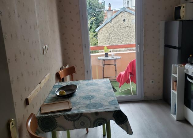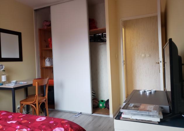 Grand type 2 avec salon/salle à manger, cuisine,terrasse, wc, salle de bain, chambre avec grand placard de rangement, bureau, tv.