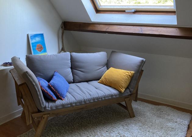 Salle de bain et toilettes privatives. Grand jardin arboré. Place de parking.