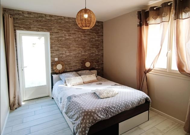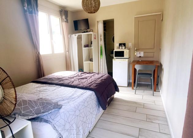Chambre avec accès indépendante, équipée d un lit double, table , chaise, TV, dressing, bouilloire, réfrigérateur, micro ondes, salle de douche avec WC attenant.