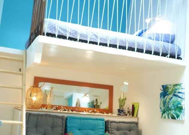 Piece de vie + mezzanine et salle de bains/wc privatifs