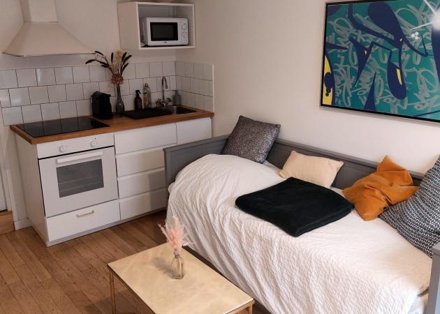 Studio in de 18m2 en rez de chaussé de notre maison comprenant cuisine, salle de bain, bureau, toilettes ainsi que l'équipement suivant: four, micro-onde, réfrigérateur, plaques induction. Accès possible au lave-linge.