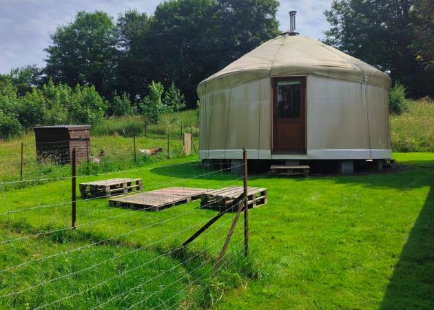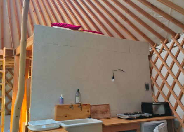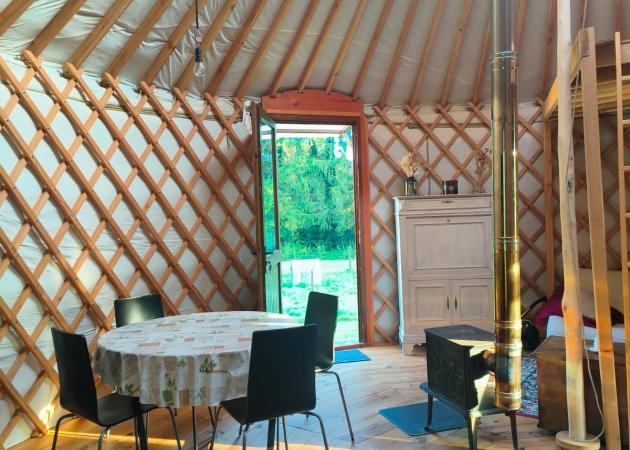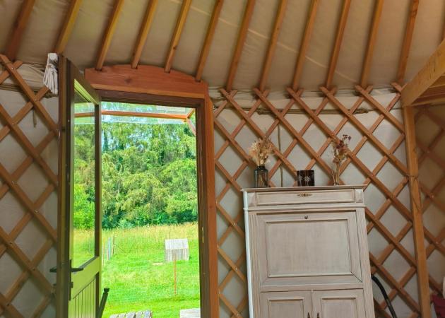 Elle a été installé en 2022, j'ai vécue dedans pendant 2 ans. J'ai finalement décidé de m'installer dans l'habitation que nous avons rénové. Nous la louons car nous souhaitons qu'elle puisse continuer à accueillir des personnes qui souhaite vivre l'expérience de l'habitat léger, ou simplement des personnes qui auraient besoin d'un pied à terre quelques mois. Vivre en yourte est vraiment une belle expérience, c'est un habitat qui est super cosy et confortable.