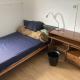 Salle à manger avec canapé, salle de bains avec baignoire, WC et cuisine partagée, incluant toutes les commodités (lave linge, lave vaisselle, micro ondes, bouilloire, four, vaisselle, ustensiles, etc..) et un balcon ensoleillé.