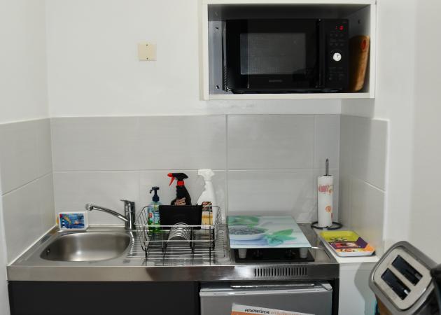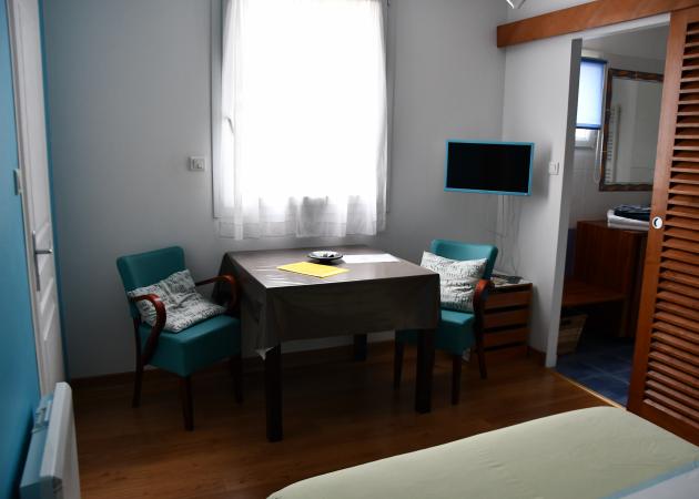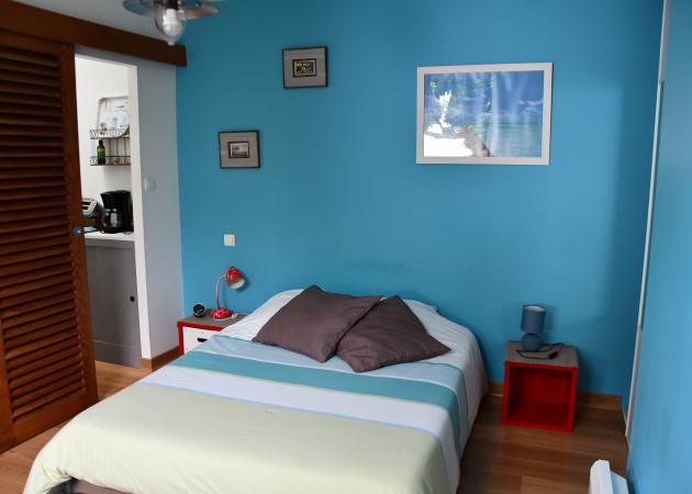 Il comprend 1 lit en 140, TV, accès Wi-Fi gratuit, grand placard de rangement, une kitchenette équipée frigo, plaque vitrocéramique, four combiné, micro-ondes, cafetière, bouilloire. Salle de bain avec douche à l'italienne et WC.