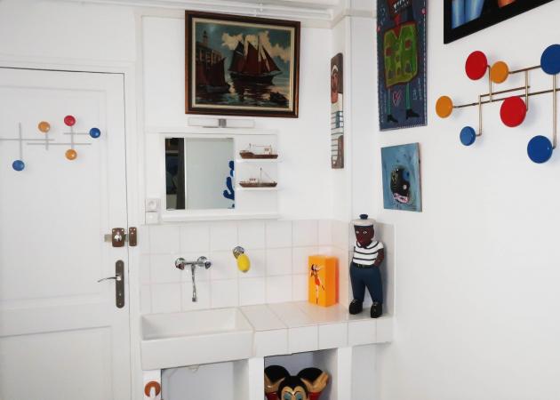 Une chambre avec salle de bain et toilettes privatives dans un vaste appartement situé sur les quais en rez-de-chaussée.