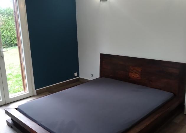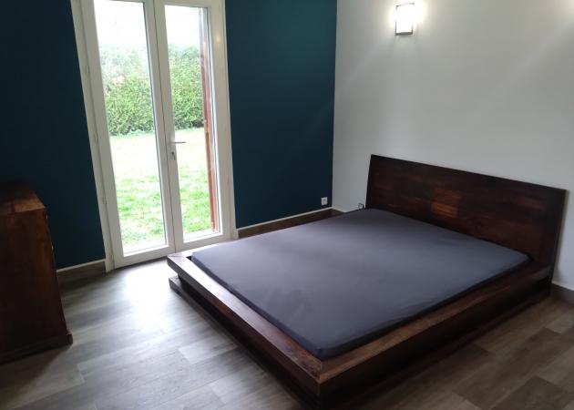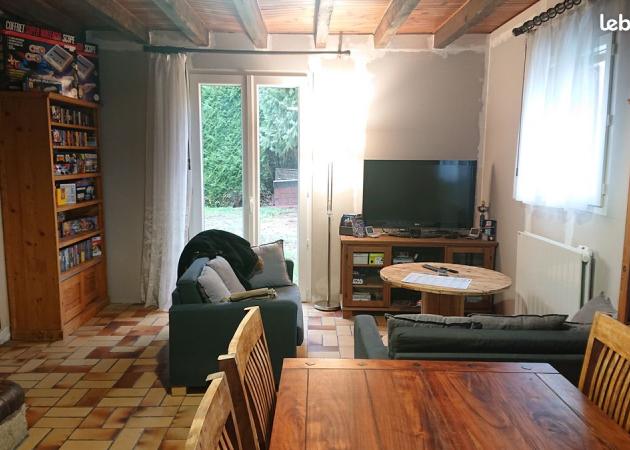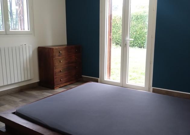 Dans une maison de 120m2 je propose a louer une chambre de 16m2 tres lumineuse avec une fenetre et une porte fenetre qui possede sa clef ce qui permet d avoir un acces direct via l'exterieur , entieremment renovee et meublee avec un placard integre et un lit double et un bureau , seule chambre au rdc avec tt commoditees en partage toilette, SDB, Cuisine ,tele ds le salon ,cheminee, internet ,serre de 18m2 quelques fruits et legumes ainsi que des oeufs frais ,machine a laver a disposition et compris dans le prix de la location