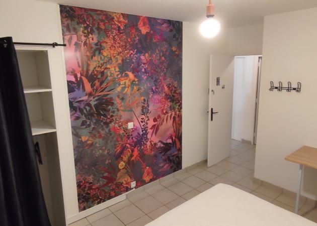 => Belle chambre 11 m2 + loggia 2 m2 : • Un lit double 140 cm avec matelas/sommier de bonne qualité, oreillers, couette, protège matelas, tablette de nuit • Un bureau avec des étagères + 1 chaise • Un espace rangement fonctionnel (placard, penderie, portes-manteaux) Chaque porte de chambre est munie d’un verrou à clés.