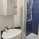 => 1 salle d’eau avec une douche, meuble vasque, miroir, sèche-serviette