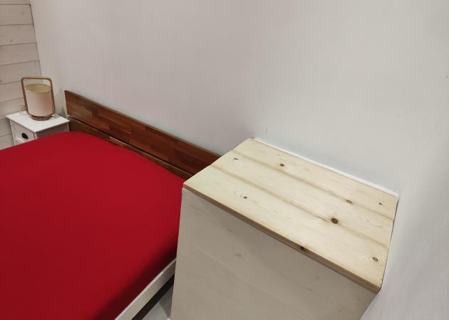 La porte d'entrée de la chambre est une porte coulissante munie d'un crochet de fermeture à l'intérieur. Le plafond de la chambre est équipé d'un velux électrique avec télécommande.