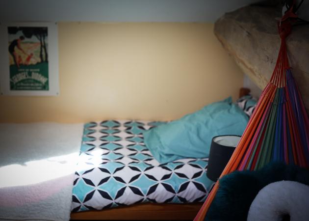 Un lit une place dans une mezzanine confortable et cozy. Idéal pour une étudiante. Accès à la salle de bain et à la cuisine. Très grand jardin et proximité avec la forêt. Place de parking.