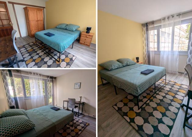 1 chambre meublée et équipée de 15 m2 est proposée à la colocation (bail individuel) : literie neuve de qualité 140 x 190, bureau et chaise, armoire en pin, rideaux