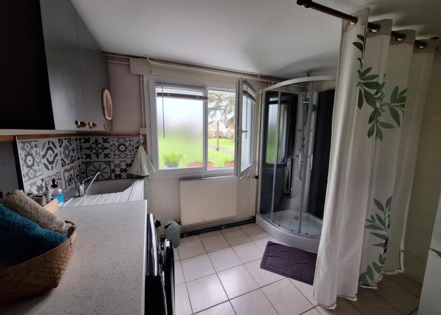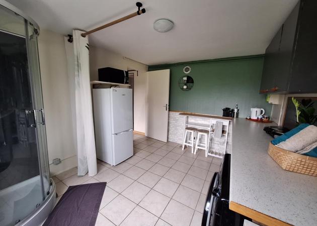 Attenant à la chambre vous disposez d'un espace cuisine de 11 m² avec plaque, réfrigérateur, micro-onde, ainsi que d'une douche.
