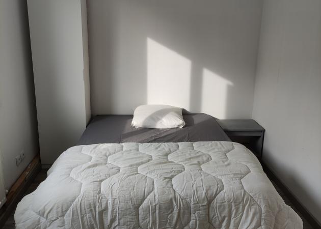 La chambre à louer (2 nuitées minimum) est équipée de 2 armoires, un lit 140x190cm, une table de nuit, une commode et un bureau.