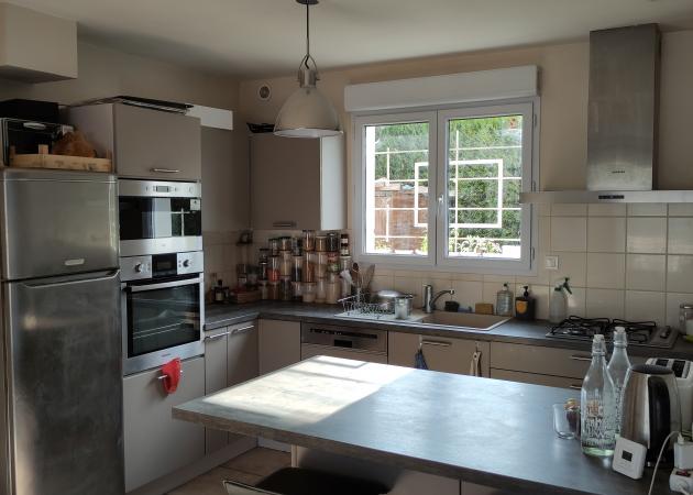 - d'une grande pièce à vivre (salon, salle à manger et cuisine toute équipée) de 46m2
