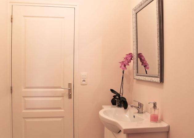 Chambre au rez-de-chaussée avec salle d'eau et WC privatifs attenants. Tv dans la chambre.