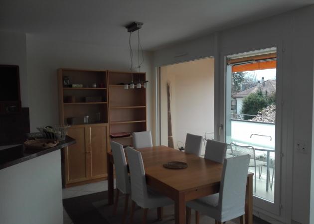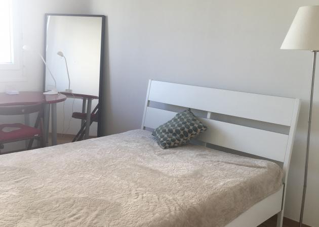 Chambre disponible pour 1 personne à partir de janvier 2025. Equippée avec lit double, bureau, grand placard, étagère, lampe, miroir sur pied. La cuisine comprend un lave-vaisselle, grand frigo, four et plaque vitro-céramique (équipements Miele).