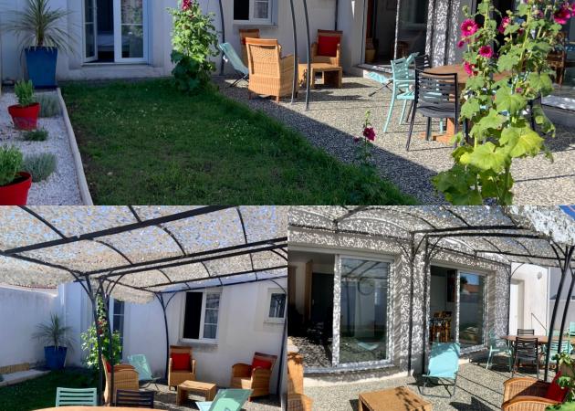 Séjour double partagé avec cuisine équipée ouverte. Jardin clos de murs et terrasse. A 5 min de La Rochelle et 2 min de zone commerciale. Proche bus et centre bourg. Garage où l'on peut entreposer qq effets personnels. Economie d'électricité car panneaux solaires récents. Stationnement aisé dans la rue. Loyer 500e+50e charges réajustables en fonction de la consommation réelle.