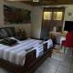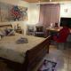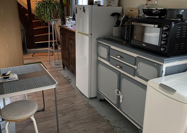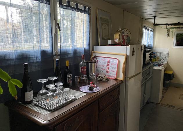 Possibilité d’accéder à la cuisine équipée d’un réfrigérateur, d’un four avec plaque de cuisson, vaisselle à disposition, cafetière, bouilloire et grille pain.