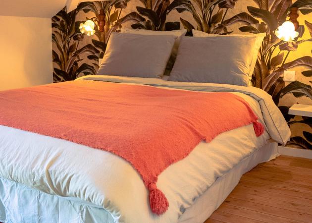 A l'étage vous découvrirez l’espace nuit avec la chambre offrant un lit queen size, une salle de douches avec vue jardin et wc indépendant.