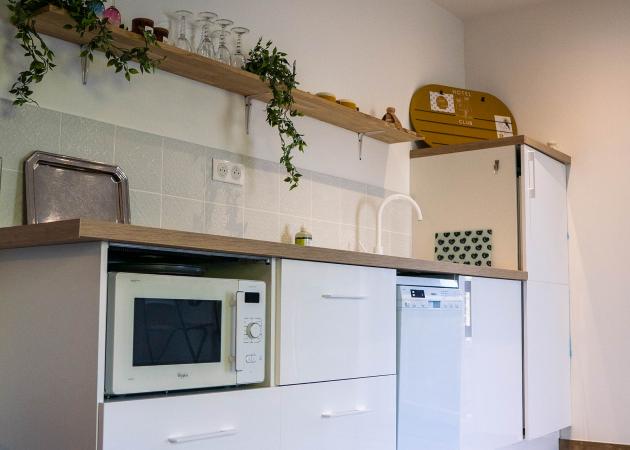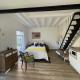 Cette maison indépendante se compose d’une lumineuse pièce de vie avec vue jardin, une cuisine entièrement équipée (plaque vitrocéramique, four micro-ondes mufti-fonction, lave-vaisselle, réfrigérateur, cafetière et théière), un espace salon et un espace repas ou bureau; vous profiterez d'une terrasse et un espace jardin, verger...