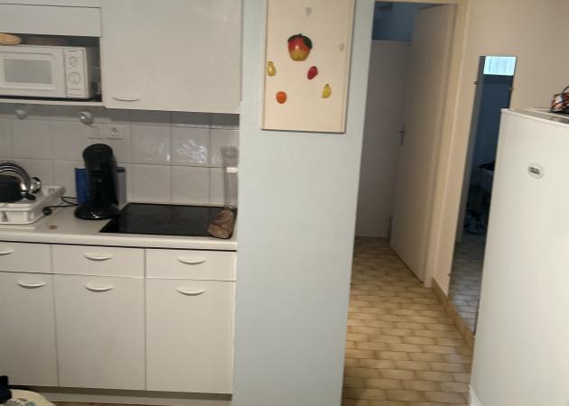Je suis dans un petit studio au grau du roi avec un clic clac et une chambre avec 1 lit pour dormir,
