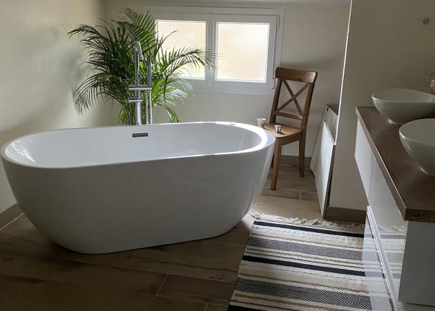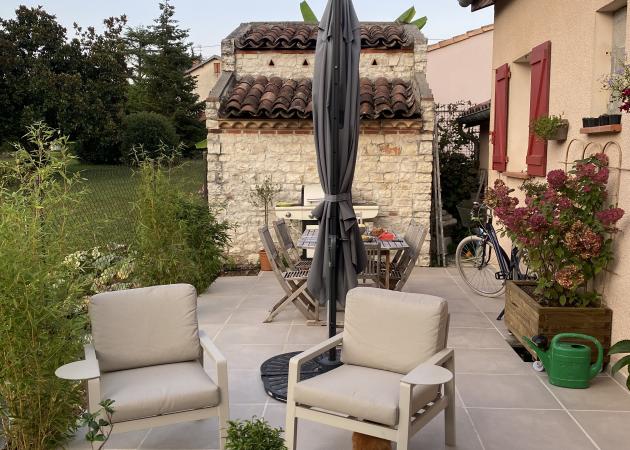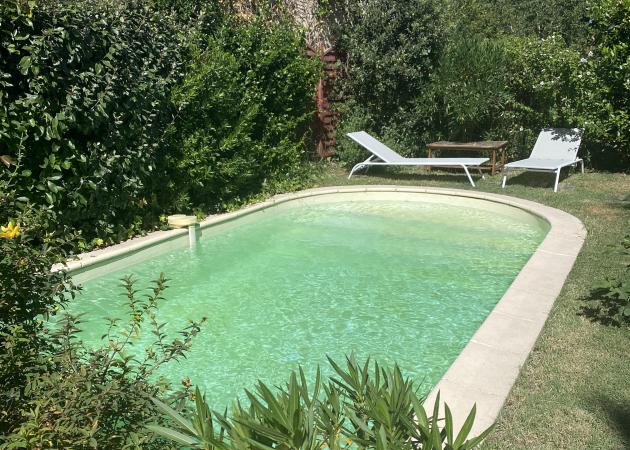 Accès à toutes les pièces de vie, séjour, cuisine avec la possibilité de faire ses repas et l’extérieur avec une terrasse et piscine
