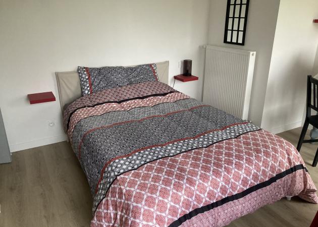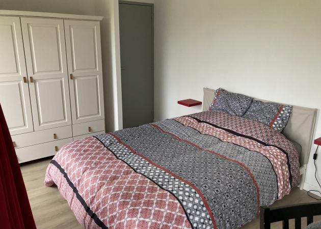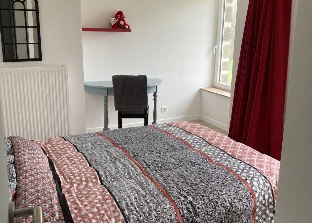 La chambre comprend un lit 2 personnes, un bureau, une armoire.