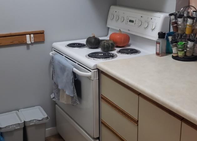 Salon éclairé avec table a manger. La cuisine inclut un mélangeur Vitamix, vaisselle, micro-onde, des poêles, un air Fryer et autocuiseur pression Insta-pot, tout ce que vous avez besoin pour cuisiner (et déguster)vos repas.