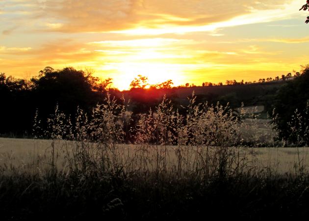 Nichée au cœur de paysages idylliques parsemés de champs de tournesol et de blé doré, cette propriété de caractère s’étend sur un hectare d’espaces verts ombragés.
