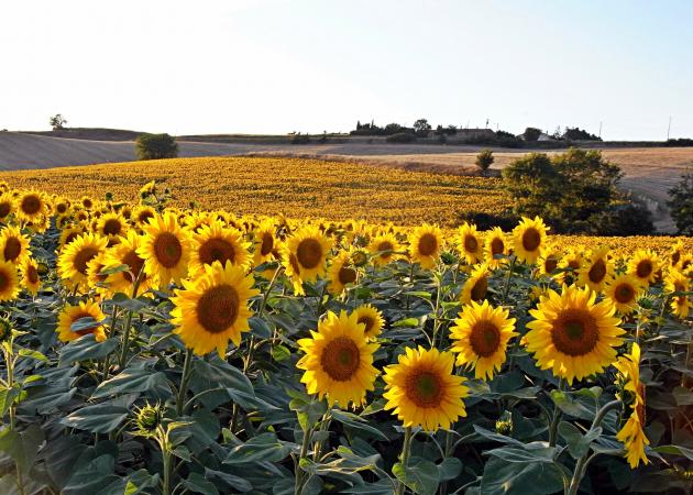 Nichée au cœur de paysages idylliques parsemés de champs de tournesol et de blé doré, cette propriété de caractère s’étend sur un hectare d’espaces verts ombragés.