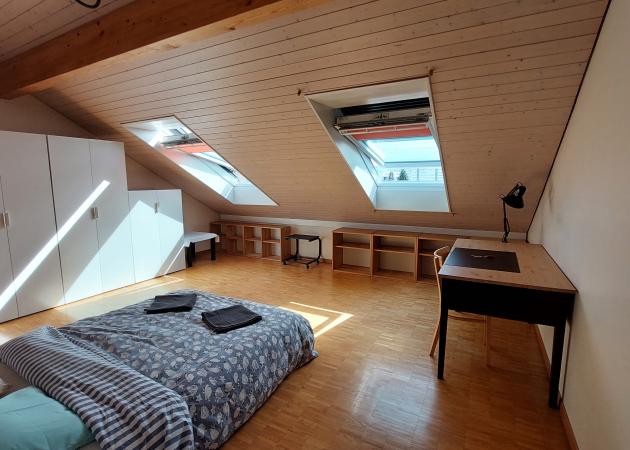 Il s'agit d'une chambre meublée très lumineuse (2 grands velux) dans les combles avec sa salle de douche privative dans une maison composée de 4 chambres en colocation. Uniquement pour personne non-fumeuse et tranquille.