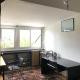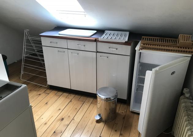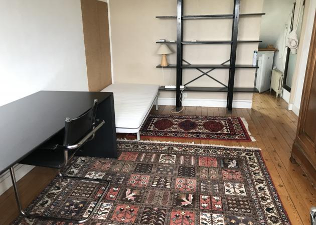 Meublée d’un lit, bureau, armoire, étagères. Wifi