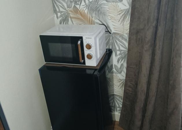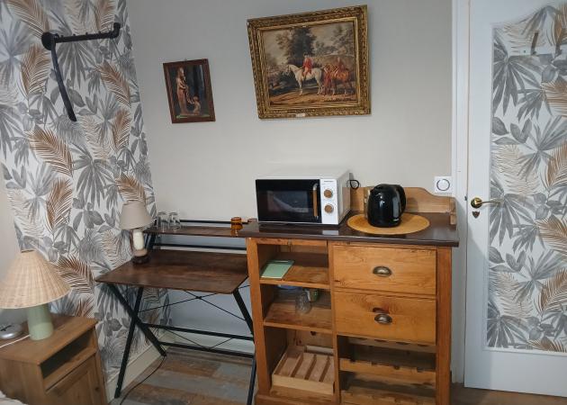 Équipements pour vos repas et petits-déjeuners : machine à café, bouilloire, grille-pain, micro-ondes et frigo