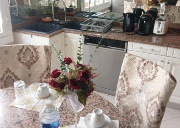 La maison est construite sur 3 étage chacun de 93 m2 , 10 pièces, 2 salons/séjour, 7 chambres 5 salle de bain et 10 lits, et une grande cuisine aménagée entièrement équipée en marbre.