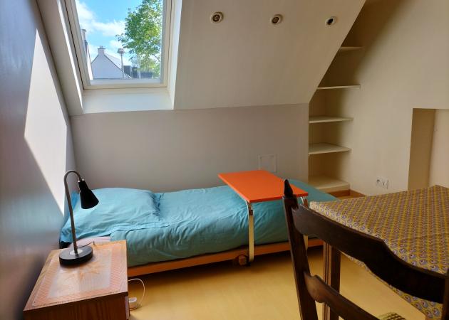 Chambre individuelle au calme - lit 90 - chevet - lampe - table basse pour lit - bureau - armoire - autre espace de rangement