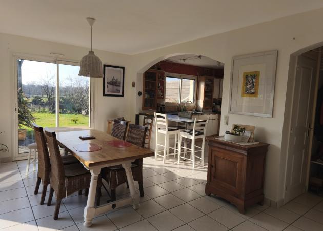 Séjour ensoleillée + cuisine tout équipée + 1 WC en bas - à l'étage grande salle de bain avec WC