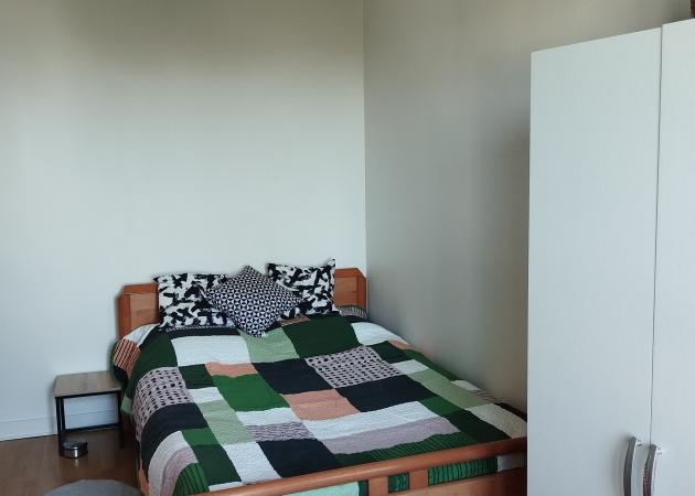 Je propose à la location une chambre de 10 m² comprenant notamment un lit double, une penderie et un rocking-chair (+ TV avec plateformes de streaming sur demande).