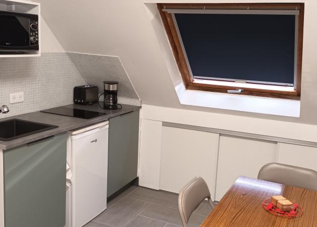 Possibilité d'avoir que la chambre avec la partie kichenette cuisine et l'ensemble salle de bain pour une ou deux personnes avec lit double.