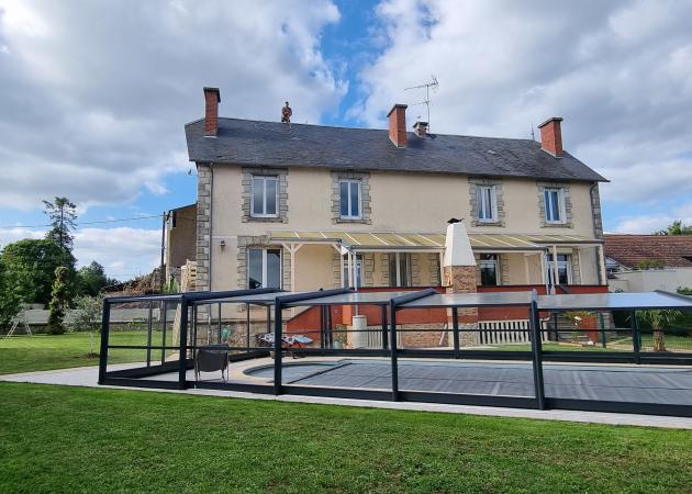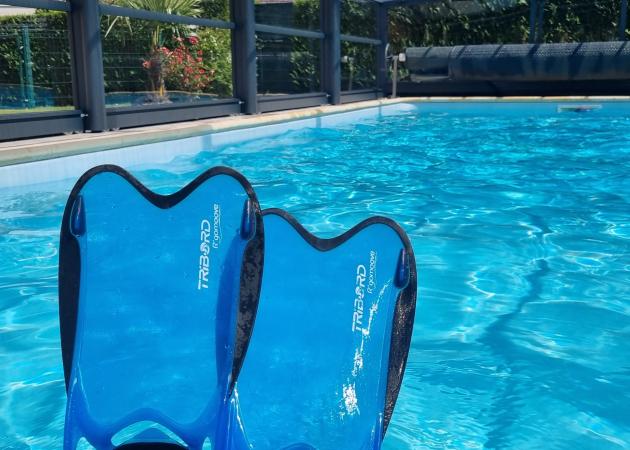 vous avez accès a la piscine couverte , jardin , terrain de pétanque , barbecue au charbon.