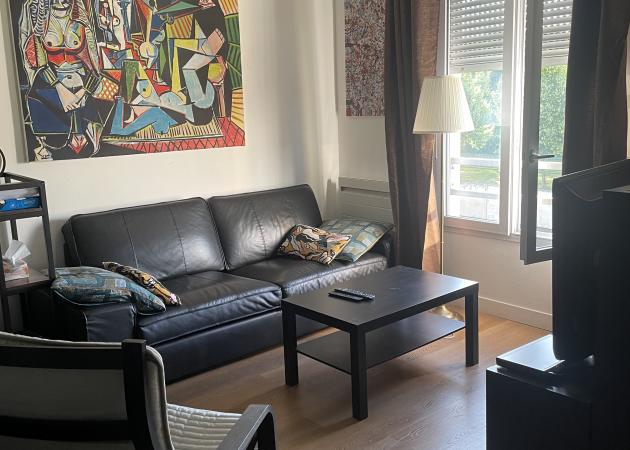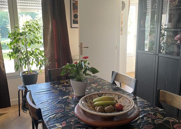 La chambre bénéficie d'un espace d'intimité agréable car elle est située au fond de l'appartement, juste à côté de la salle de bain mise à votre disposition.