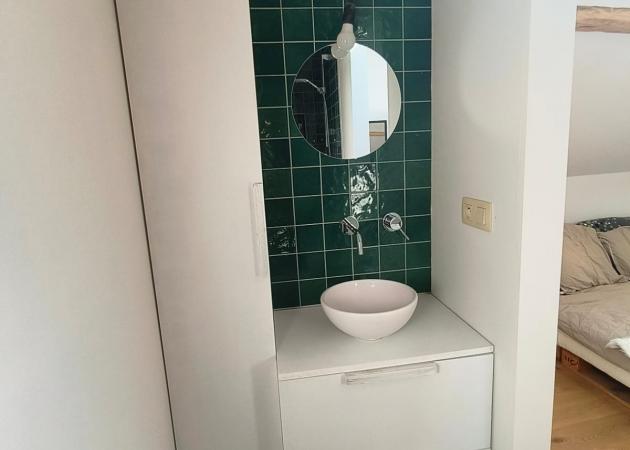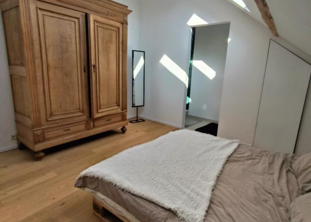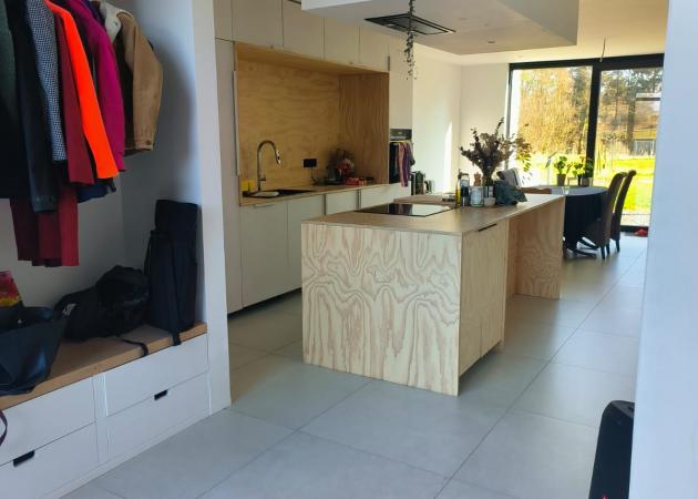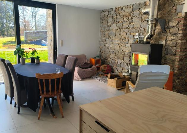 La maison est neuve, avec une grande pièce cuisine salle à manger, un espace salon/bureau à l'étage et un grand jardin. Il y a deux autres personnes. La chambre est meublé et possède sa propre salle de douche. La maison et la chambre sont tres lumineuses.
