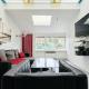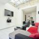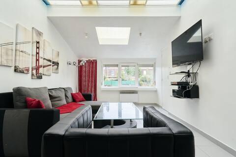 Salon avec canapés et fauteuil, espace TV avec Netflix Cuisine tout équipée