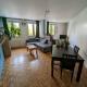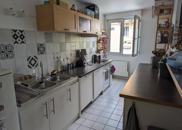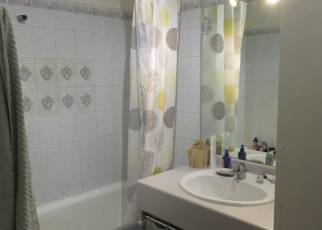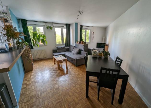 Un grand salon avec cuisine ouverte, coin nuit donnant sur 2 chambres avec lit double, une salle de bain avec WC séparé.