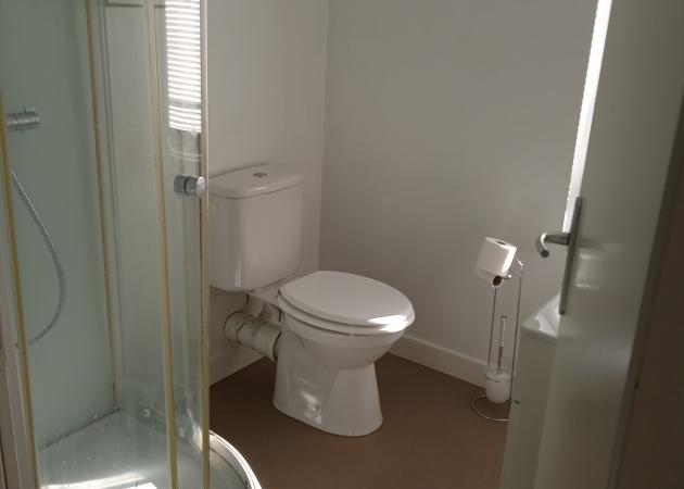 Chambre très ensoleillée, 18 M2, penderie. Wc douche et lavabo en partage avec une personne.