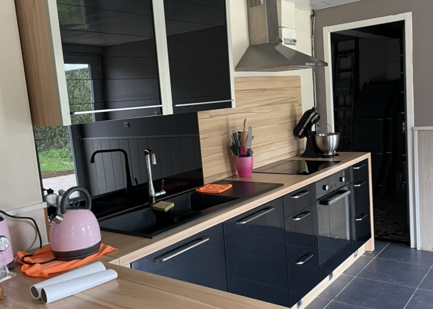 • Une grande cuisine équipée de 34 m², spacieuse et idéale pour préparer vos repas dans un cadre agréable avec un coin repas.
