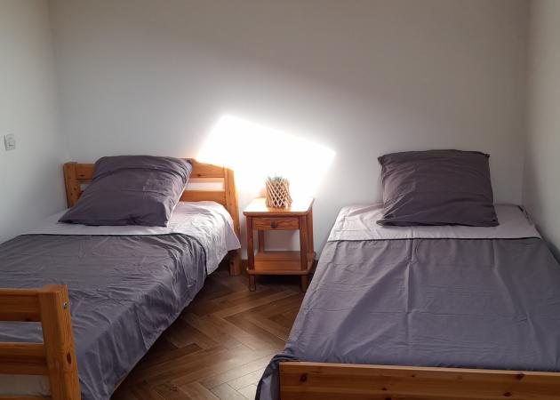 1 chambre lit double et 1 chambre 2 lits simples – douche et toilette indépendantes à partager entre les 2 chambres.