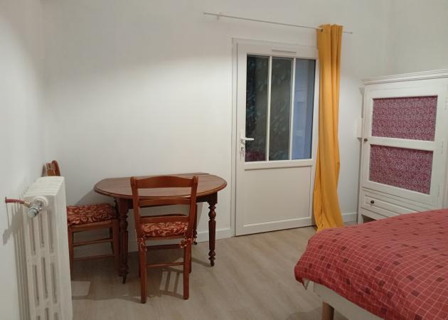 Chambre privée avec salle de bain et terrasse privée dans maison familiale.