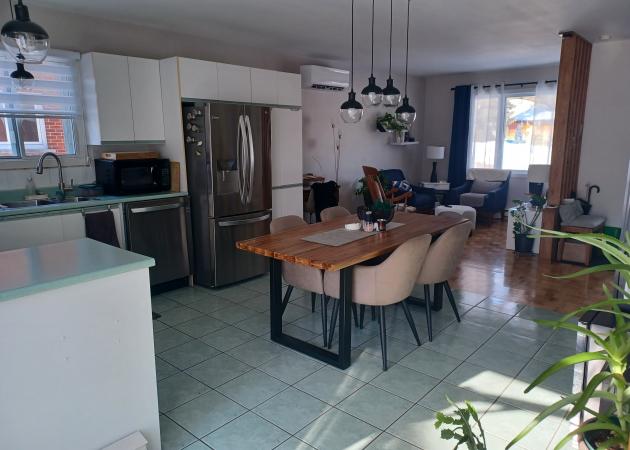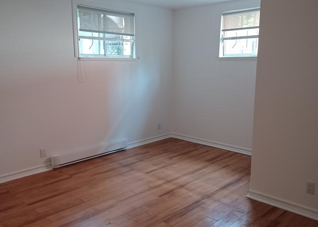 Grande chambre au sous-sol d'une maison unifamiliale, meublée ou non, bien éclairée par deux fenêtres, ventilateur de plafond et déshumidificateur au besoin, laissant place à un lit queen, commode, table, bureau, chaise, divan, télévision et walkin. Disponibilité de rangement additionnel, à discuter;