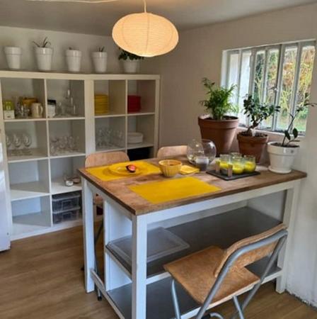 Un petit salon et une petite cuisine sont à la disposition des voyageurs au rez-de-chaussée de la maison. Dans un sous-sol aménagé. Ces espaces sont à partager si deux voyageurs louent les chambres simultanément.